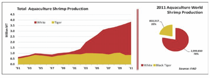Shrimp farming has changed from traditional, small-scale businesses in Southeast Asia into a global industry. Technological advances have led to growing shrimp at ever higher densities, and brood stock is shipped worldwide.