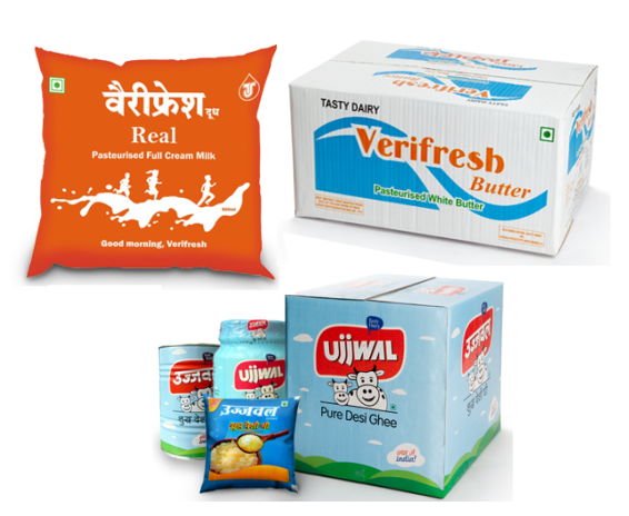 The company produces a wide range of quality dairy products under its umbrella like Pasteurized Liquid Milk, Cream, Butter (White/Salted), Pure Desi Ghee (Clarified Butter),Paneer (Fresh Cottage Cheese), Skimmed Milk Powder, Full Cream Milk Powder, Dairy Whitener, Khoya, Peda (a pure Indian Sweet), Instant Gulab Jamun Mix, Mithai
